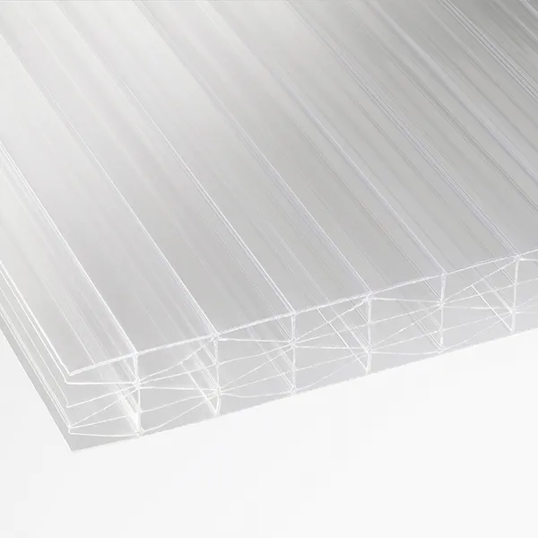 Our clear multiwall polycarbonate sheets are ideal for a variety of applications, including carport roofing, pergolas, conservatories, and polytunnels. These sheets are weather-resistant, offer high light transmission, and block virtually all UV radiation, ensuring optimal protection and comfort. With a high fire rating and ease of handling, they provide a safe and durable solution for your projects. Sheets can be cut to size, with a maximum size of 2100mm x 6000mm (WxL), and are available in a range of thicknesses from 10mm to 35mm to meet your specific needs.